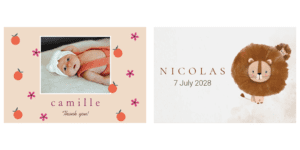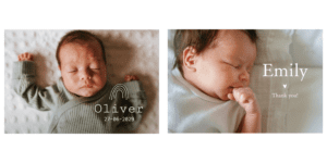 Bløde, stilfulde invitationskort med barnets navn og dato. Perfekte til at skabe en rolig og hyggelig stemning, allerede inden dagen er kommet – og noget, mange gerne vil gemme som et minde.